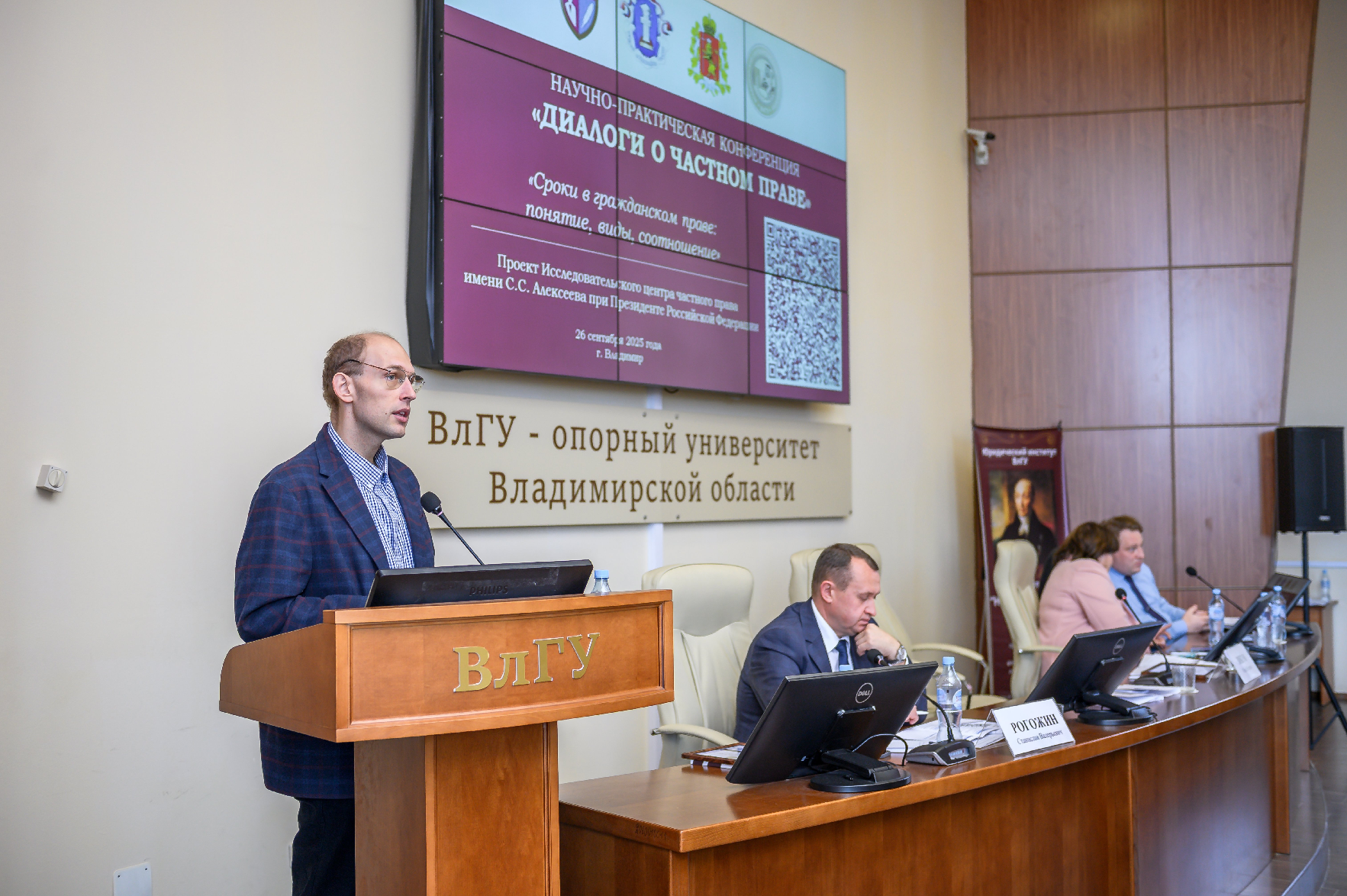 29 сентября 2025 года во Владимире состоялась научно-практическая конференция «Диалоги о частном праве», организованная Исследовательским центром частного права совместно с Владимирским региональным отделением Ассоциации юристов России, Правительством Владимирской области и Владимирским государственным университетом имени А.Г. и Н.Г. Столетовых. В качестве предмета дискуссий организаторами была выбрана тема «Сроки в гражданском праве: понятие, виды, соотношение».