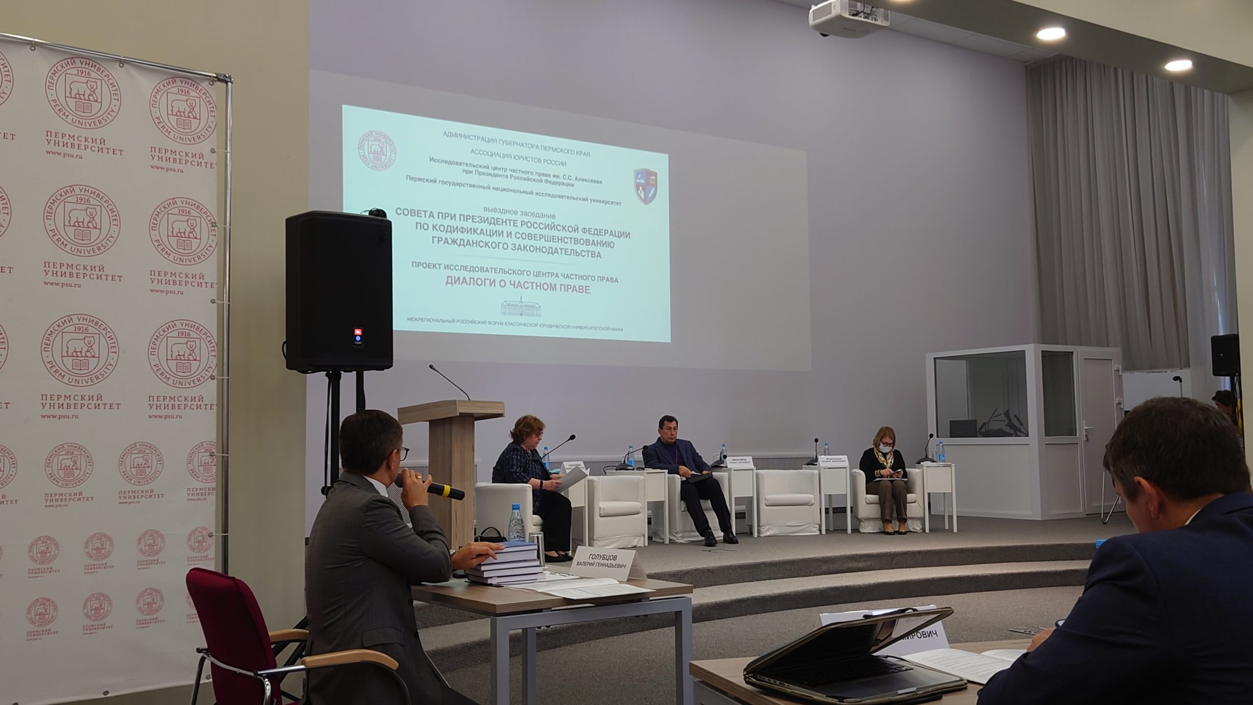 22 октября 2021 г. состоялась очередная конференция «Диалоги о частном праве», которую в этот раз мы провели в Пермском государственном национальном исследовательском университете. Среди выступающих были члены Совета по кодификации А.В. Габов, Г.А. Гаджиев, Т.М. Медведева, Е.А. Павлова, Л.А. Новоселова, А.Е. Шерстобитов, вице-президент ПАО «МТС» Р.С. Ибрагимов, доцент ВШЭ А.И. Савельев и многие другие.