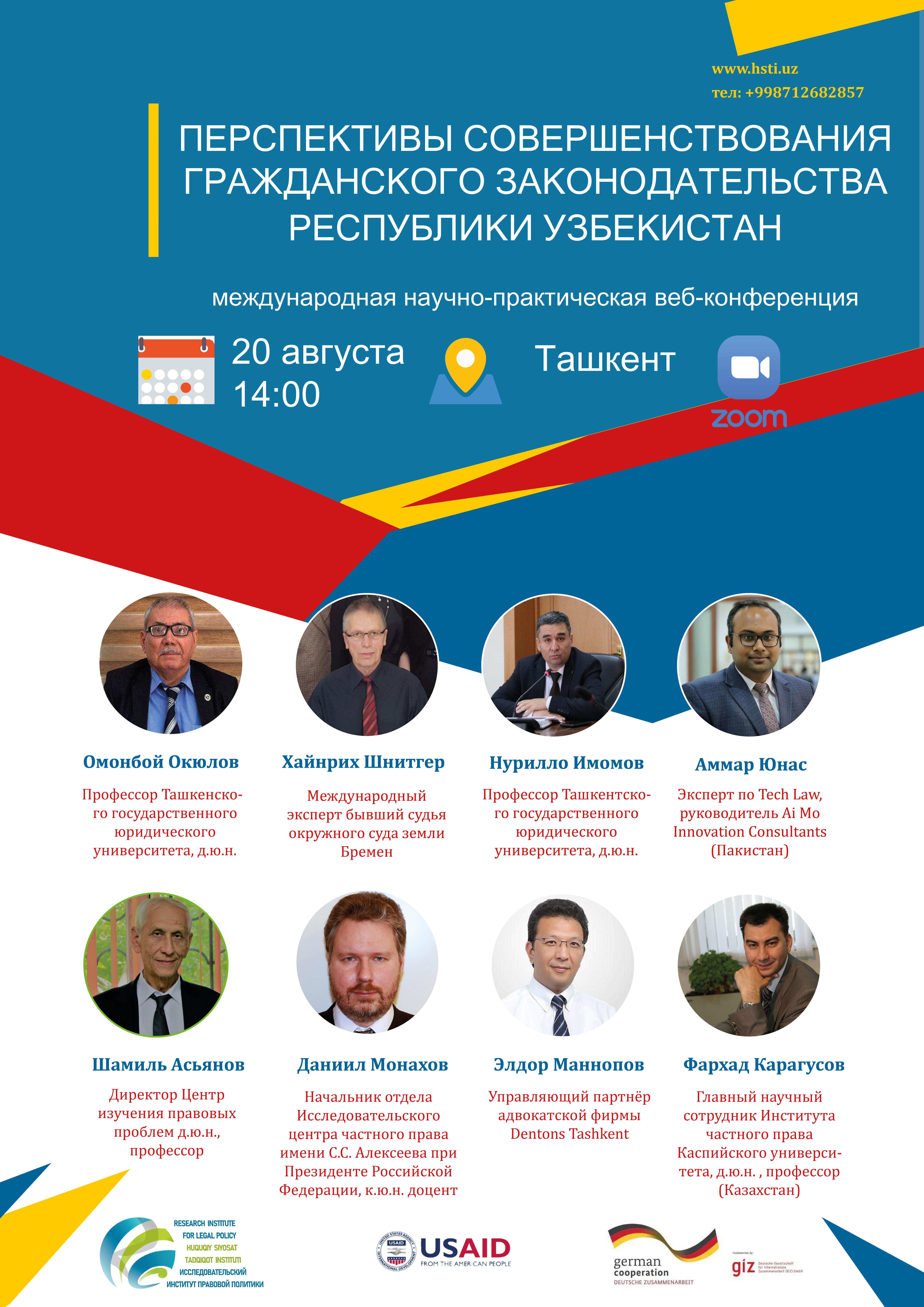 Консультант отдела законодательства о вещных правах, к.ю.н. Монахов Даниил Анатольевич принял участие в международной научно-практической веб-конференции «Перспективы совершенствования гражданского законодательства Республики Узбекистан», организованная Исследовательским институтом правовой политики при Министерстве юстиции Республики Узбекистан при поддержке Центра изучения правовых проблем (Узбекистан), USAID (США) и GIZ (Германия). Участники обсудили перспективы реформирования Гражданского кодекса Республики Узбекистан и конкретные новеллы, предлагаемые к принятию в ходе проводимой реформы. С докладами по актуальным вопросам гражданского и гражданско-процессуального права выступили представители Узбекистана, Казахстана, Пакистана, Германии и России. Исследовательский центр частного права представлял Д.А.Монахов, выступивший с докладом на тему «Реформирование системы вещных прав: сравнение опыта России и Узбекистана».