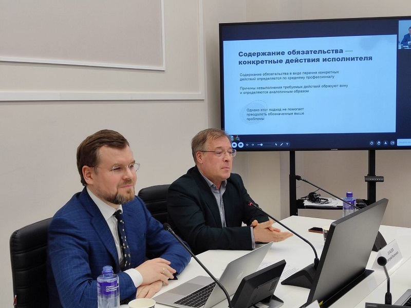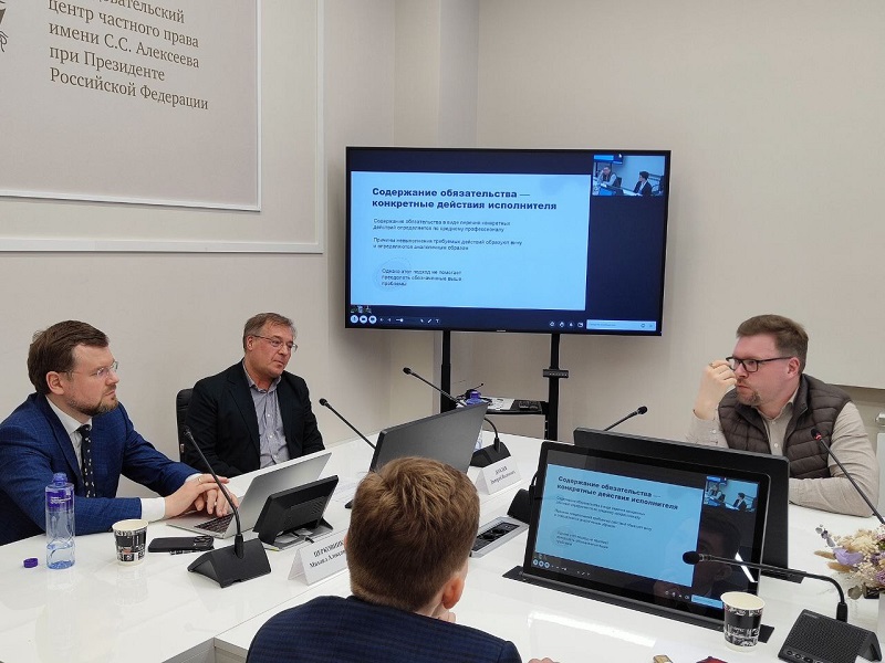 25 апреля 2024 г. в Исследовательском центре частного права состоялось совместное заседание кафедры обязательственного права и кафедры теории и истории частного права на тему «Ответственность исполнителя в договоре возмездного оказания услуг и пределы ее ограничения».