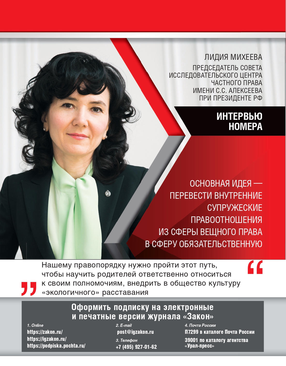 «Перевести внутренние супружеские правоотношения из сферы вещного права в сферу обязательственную»: интервью Л.Ю. Михеевой для журнала «Закон»